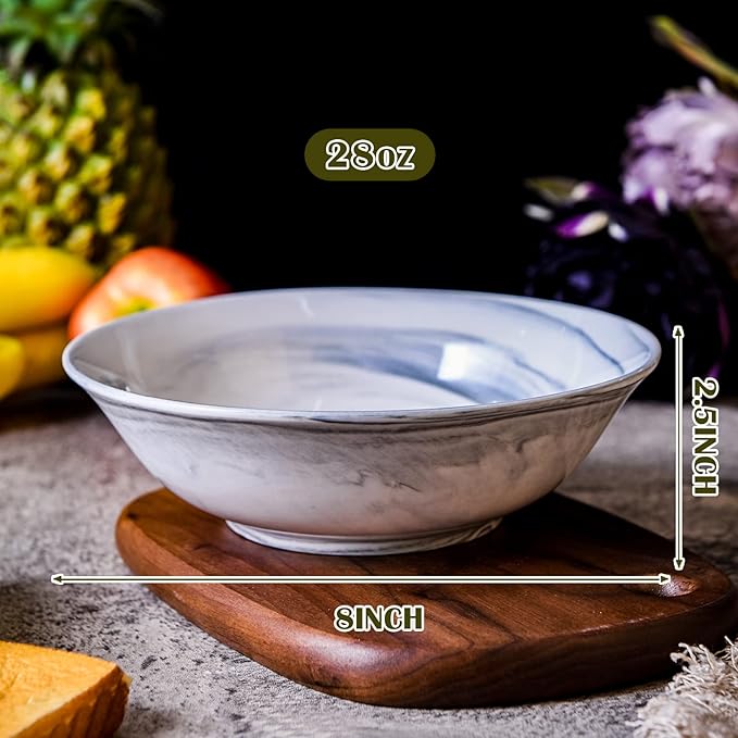 - Good Shape For Versatile Use - Ideal size 8’’ Dia, practical depth 2.5’’ H with 28 Ounce.Those bowls suitable for pasta, salad, soup, dessert, ice cream, rice, beans and so on. You would find you could use them for much more than pasta. They are also great for any meal that has a sauce that might escape off of a regular plate!
