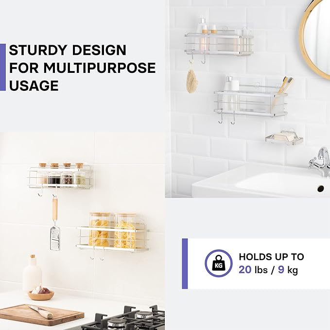 - WHAT YOU GET: Includes 2 shower caddies, 1 soap holder, 1 user manual, 4 hooks, and 3 adhesives. Enjoy our friendly customer service for any assistance you need.