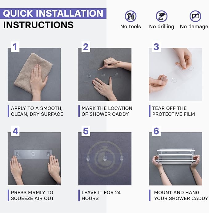 - EASY TO INSTALL & NO DAMAGE: The transparent traceless adhesive is more durable and sturdier than suction cups, requiring no drilling or wall damage. The extra hooks are removable, allowing you to reposition them anywhere, anytime.