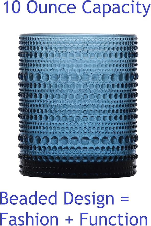 Fortessa Jupiter Beaded Hobnail Glass, 10 Ounce Double Old Fashioned (Set of 4), Clear