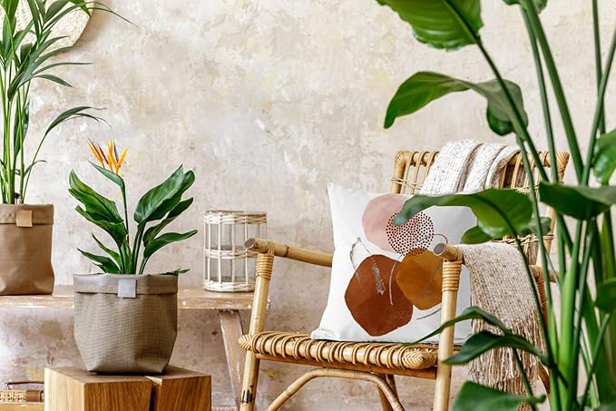 - Boho Chic: Bring the warm hues of the bohemian into your home with our abstract pillow covers. Printed with a contemporary arrangement of blue brush pink pastel, gold, terracotta, oranges, rust colored, neutrals and clay colored decorative throw pillows are the perfect accent piece to style and instantly brighten any corner