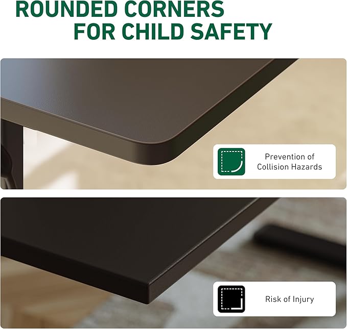 - Height Adjustable Lift: The brake system is controlled by electric motors to adjust different tabletop heights from 27.7 to 46.6 Inches. 4 Positions memory functions lift conveniently and quickly.This standing desk operates with 45 db.