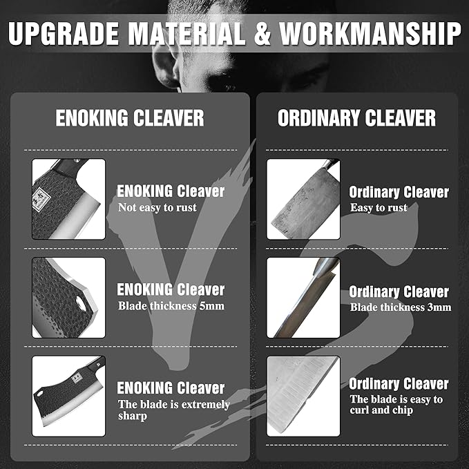 ENOKING 7.1″ Butcher Knife & Chef’s Knives – Hand Forged High Carbon Stainless Steel, Full Tang for Kitchen & Outdoor Meat Cutting