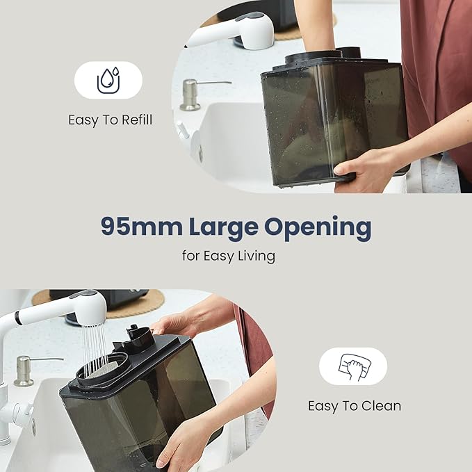 - Convenient Daily Maintenance: The 95mm wide-opening water tank makes you forget the inconvenience of small water inlets when refilling. Moreover, cleaning is a breeze as your hand can easily reach deep into the tank, leaving no corners untouched. You'll surely wish you had discovered this convenience many years ago.