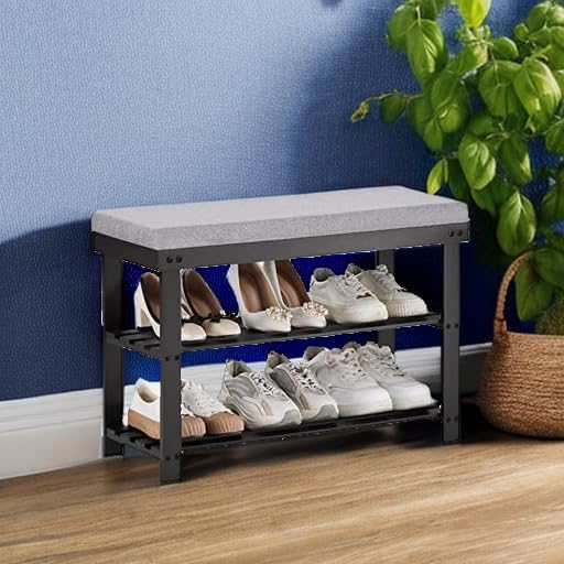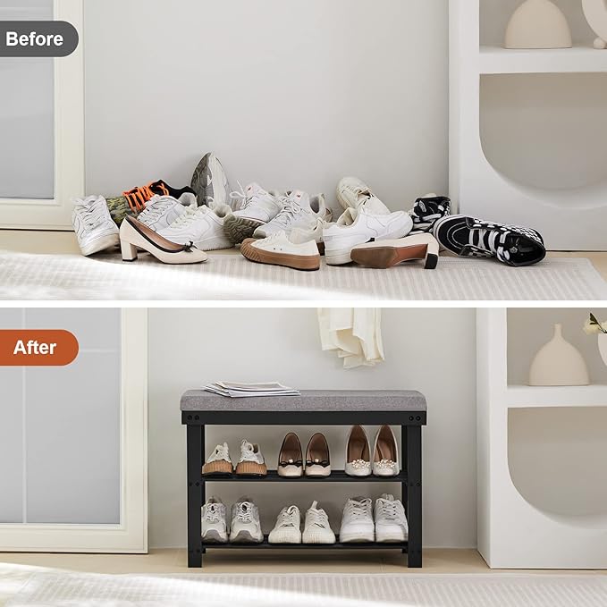 - 【SHOE BENCH AND STORAGE】3 tiers shelves with a distance of 6.7” between them accommodate up to 6 pairs of shoes, which is perfect for your shoes, books, plants,toys or other stuffs.