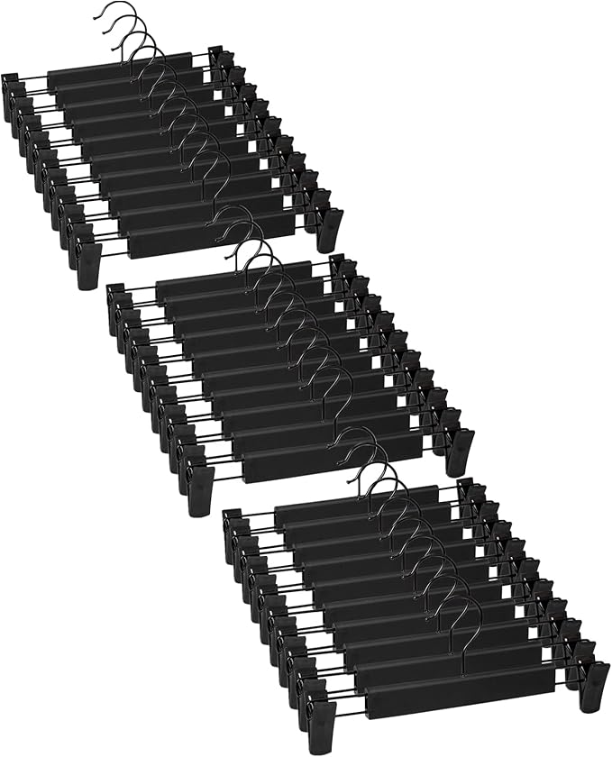 30 Pack Skirt Hangers,Pants Hangers with Clips,360 ° Swivel Hooks Space Saving Hangers for Pants, Skirts, Clothes, Jeans, Black