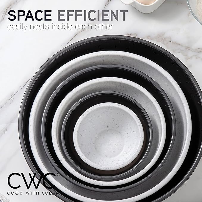 COOK WITH COLOR Mixing Bowls with TPR Lids - 12 Piece Plastic Nesting Bowls Set includes 6 Prep Bowls and 6 Lids, Microwave Safe Mixing Bowl Set (Black and White)