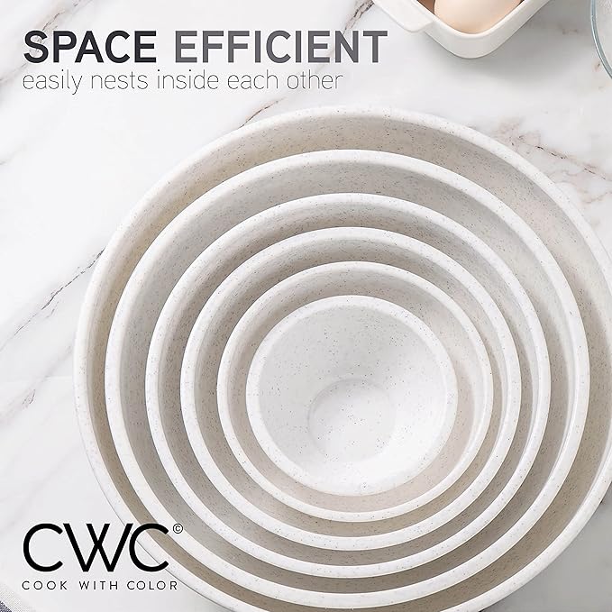COOK WITH COLOR Mixing Bowls with TPR Lids - 12 Piece Plastic Nesting Bowls Set includes 6 Prep Bowls and 6 Lids, Microwave Safe Mixing Bowl Set (Speckled White)