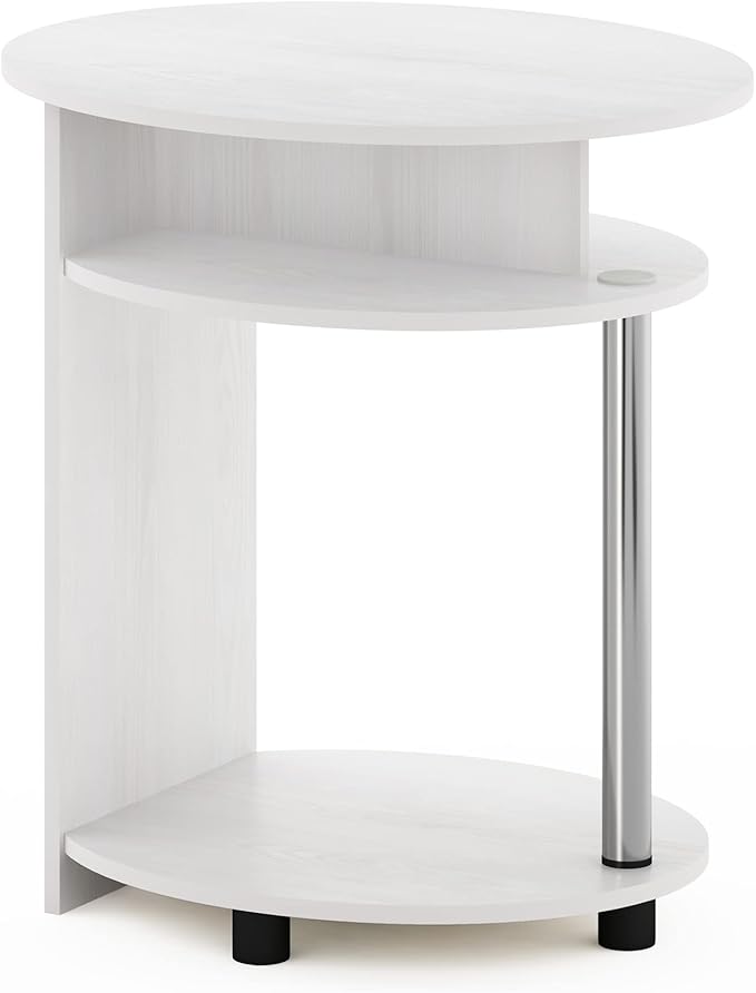 Furinno JAYA Simple Design Oval End Table with Bin, White Oak/Chrome
