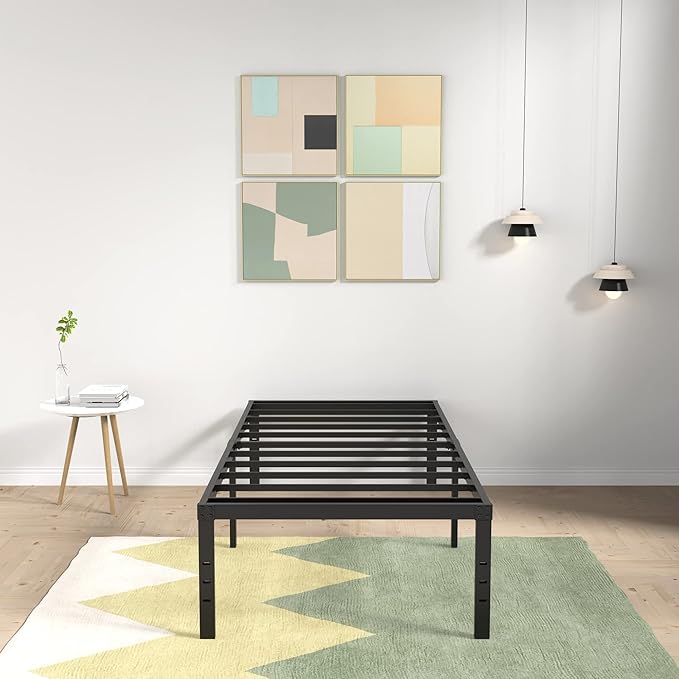 18 Inch Twin Bed Frame Heavy Duty No Box Spring Needed Metal Platform with Maximum Storage, Easy Assembly, Noise Free, Black