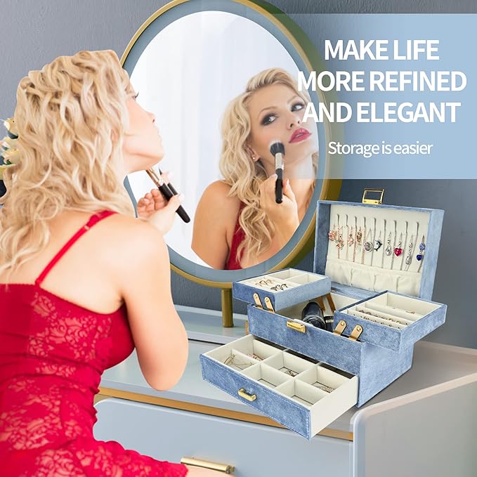 - Space-Saving Jewelry Box: With our 3-layer jewelry box, all your jewelry will be organized and easy to access. From then on, you have a bright dressing table that makes your room look more tidy and elegance. Moreover, the classification design of our large jewelry box organizer allows you to reduce the search time