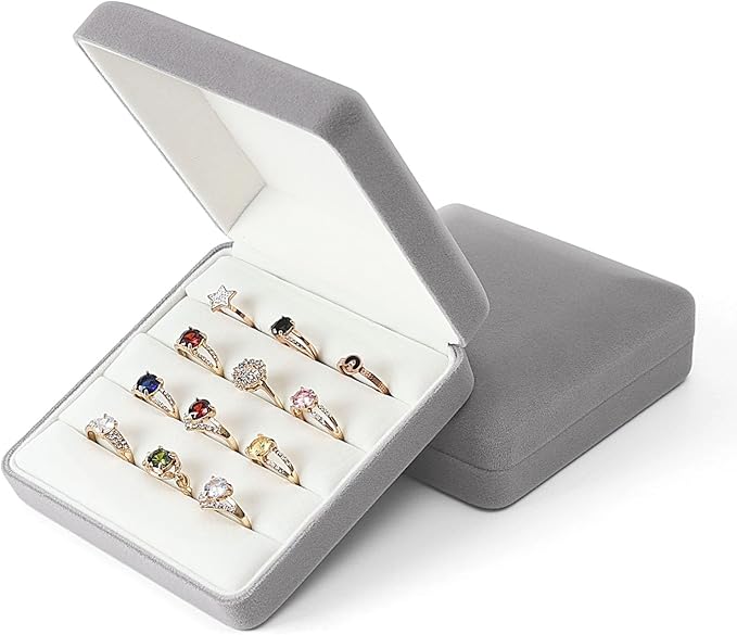- (❁´◡`❁)【EXCELLENT MATERIAL】Ring Display Case with High-quality Materials: Jewelry travel organizer made of high-quality velvet materials, more solid and safer, with good waterproof and shock resistance. soft velvet lining to prevent your jewelry from scratching and collision.