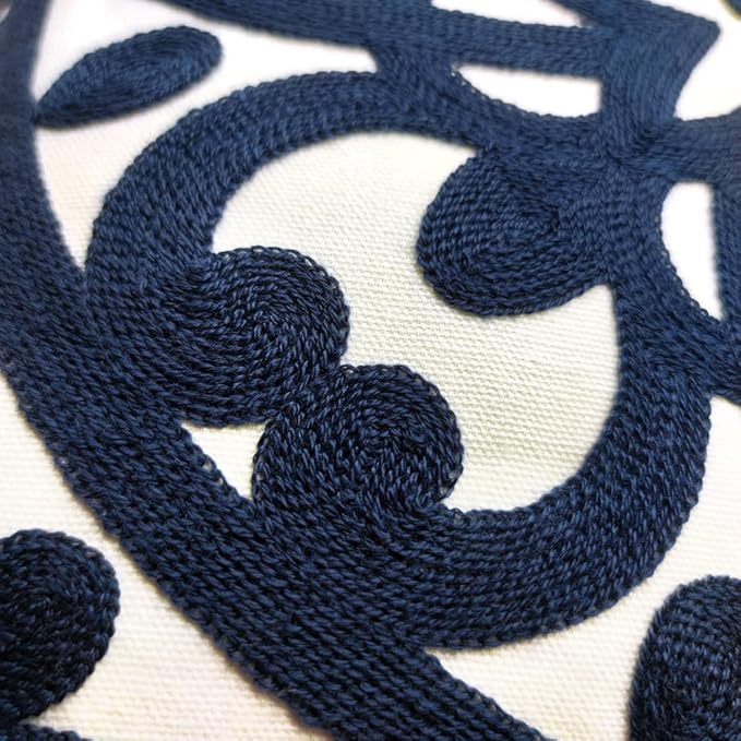 Alysheer Embroidered Lumbar Decorative Throw Pillow Covers 12"x 20" Set of 2, Classic Boho Mandala Embroidery Pattern Cotton Rectangular Cushion Case for Sofa Couch Living Room Bedroom(Navy Blue)