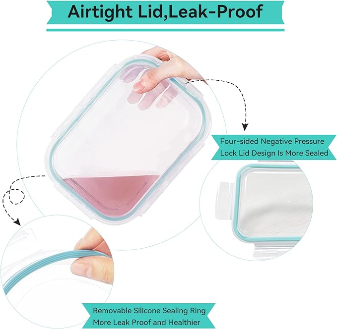 - 【Easy Open/Close Lids That Are Airtight & Leakproof】 - Glass food storage containers with locking lids offer the perfect solution with a secure snap lid design that is easy to open and close.Glass food storage containers with lids four-sided negative pressure snap+TPE sealing ring design make containers glass more tightly sealed, soup not be spilled, prevent the loss of moisture and umami and food from oxidative corrosion, prolong the preservation time!