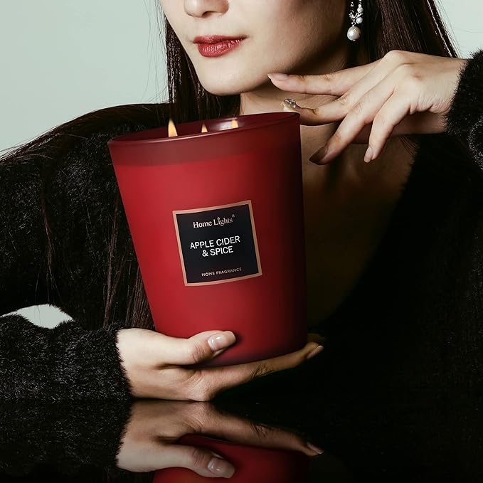 HomeLights Highly Scented Candles, Big 33.3 oz for Home, Natural Soy Aromatherapy Candles, Smokeless Long Lasting 130h with 3 Cotton Wicks, Candles Gifts for Women & Men - Apple Cider & Spice