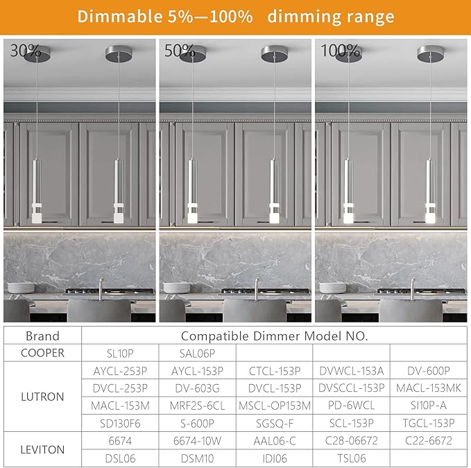- 【Dimmable】The pendant light 0%-100% dimming range, compatible with most household thyristor LED dimmers, running smoothly without flicker.Suitable for 110~120 volts