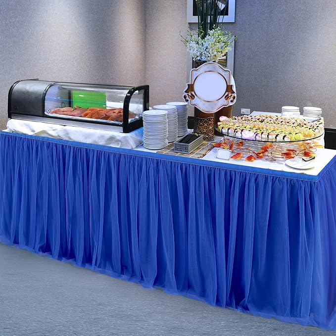 Royal Blue Tulle Table Skirt for Baby Shower 9ft Tutu Table Cloth Cover for Wedding Reception, Bridal Shower, Birthday Party, Graduation, Banquet Decorations