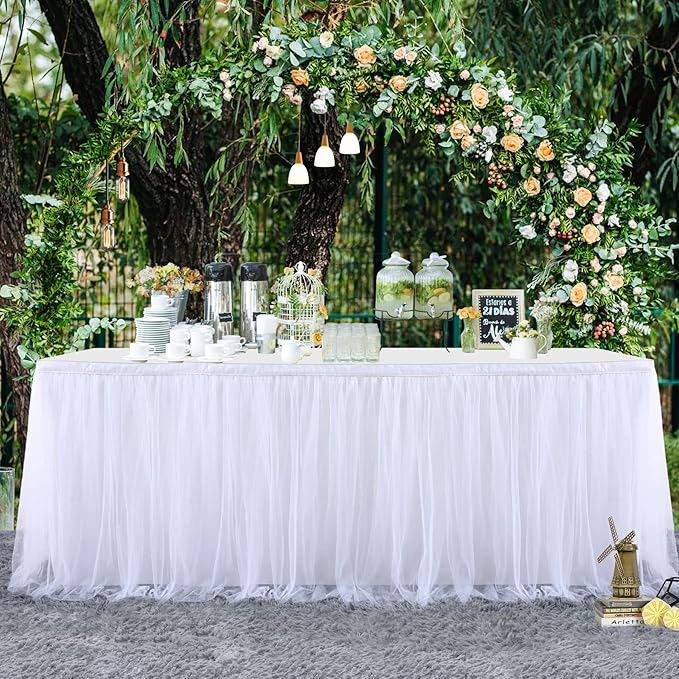 - Easy care: White tutu table skirt perfect for rectangle or round tables. You only need to put on the table skirt a few hours before the party starts. After use, you can hand wash and hang up to dry, and then continue to use it for the next event.