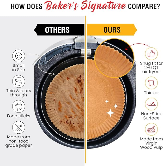 - NATURAL UNBLEACHED ASSURANCE - Cook with confidence using our brown parchment paper for air fryer. Unbleached and natural, our air fryer parchment paper liners keep your food pure and safe.