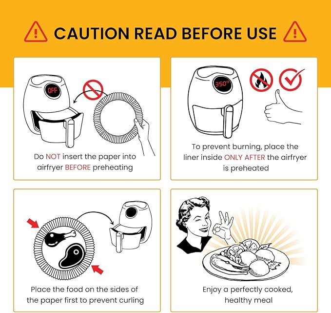 - EASIER CLEANUP & TIME SAVINGS - Simplify your cooking routine with our round air fryer liners disposable. Effortless clean-up means more time enjoying your meals!