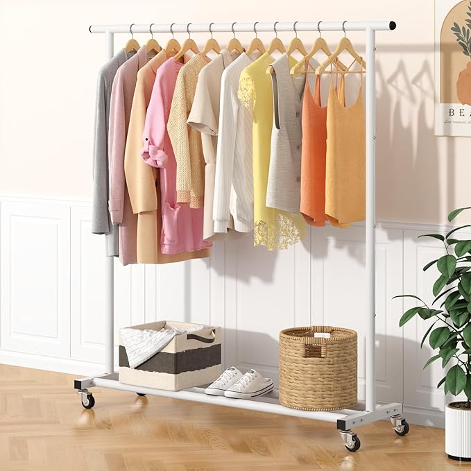 Buzowruil Metal Rolling Clothing Rack Adjustable Freestanding Garment Organizer with Wheels, Space-Saving Design for Home, Closet, Office, or Retail, White