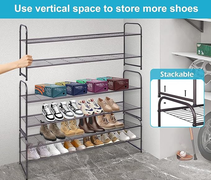 - To stack like blocks: 2 sets shoe rack for closet floor can be stacked vertically to get a complete 4-tier shoe organizer for closet, keep sturdy and will not wobble once stackabled. The tiers also can be removed by needs;