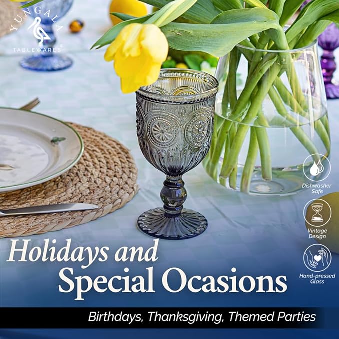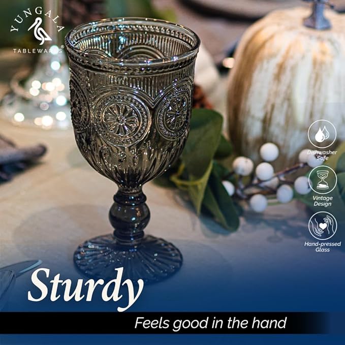 - Sturdy and Elegant Design: Pressed rather than blown, these durable yet elegant smoke or black goblets offer a solid feel in hand, ensuring worry-free entertaining with a sophisticated vintage and retro look, perfect for any special occasion