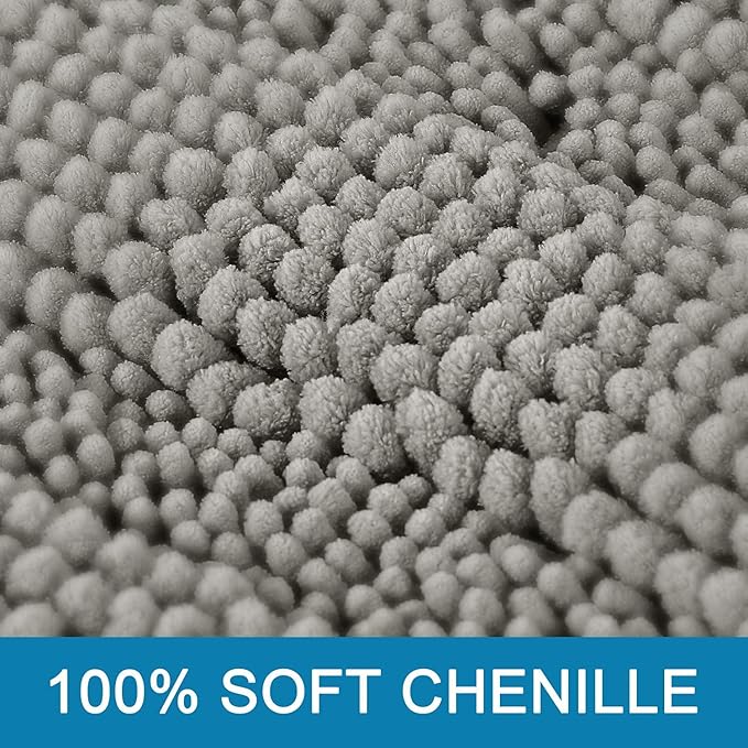 - ULTRA THICK: These bath rugs are passed GLOBAL RECYCLED STANDARD certificate. Compare the normal quality 1350g/sm, this plush chenille carpet set is more thick and bushy, quality up to 2000g/sm weight, thus make the bath mats amazing soft and cozy like a comfortable quilt protector for your feet