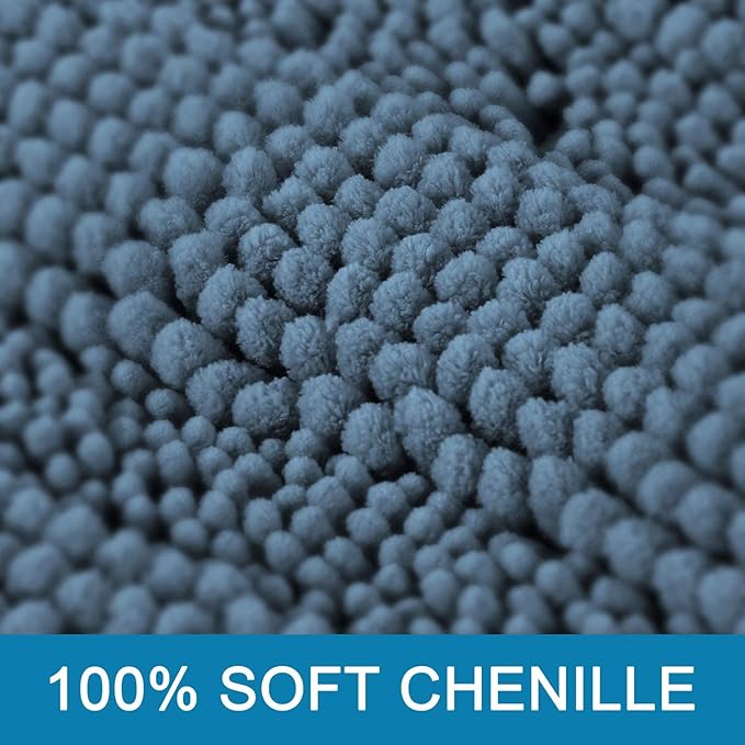 H.VERSAILTEX Bath Rug Non Slip Chenille Striped 17" x 24" Absorbent Soft Shaggy Washable Dry Fast Bath Mat - Stone Blue