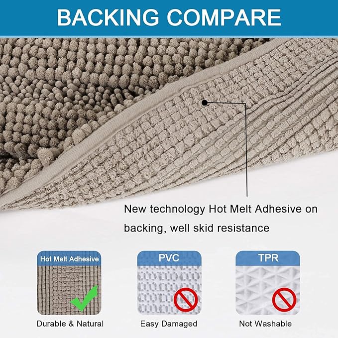H.VERSAILTEX Bathroom Rugs Bath Rugs for Bathroom Non Slip Bath Mats Extra Thick Chenille Striped Rug 17" x 24" Absorbent Soft Shaggy Washable Dry Fast Bath Mats for Bath Room Floor - Taupe