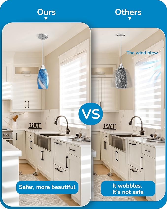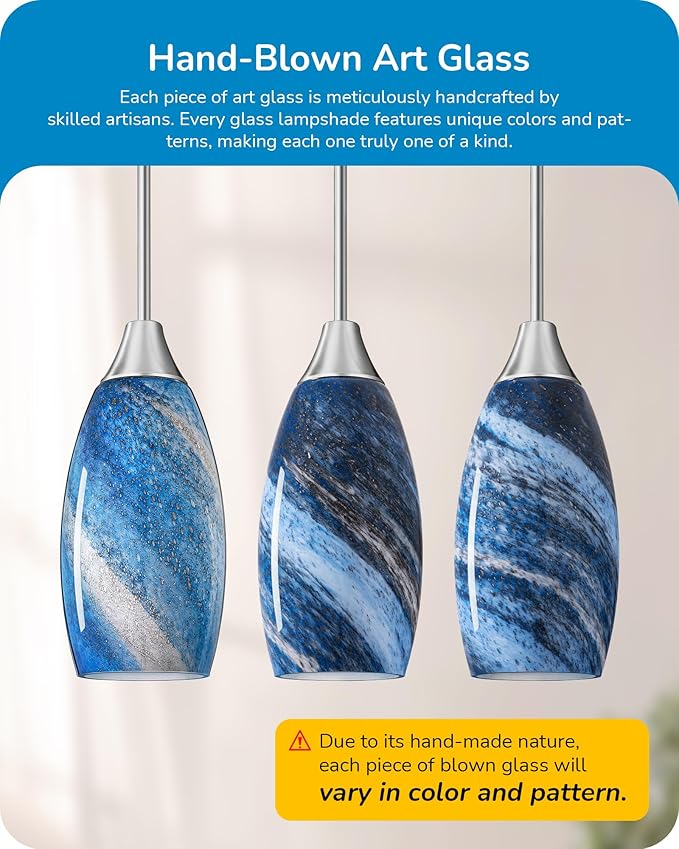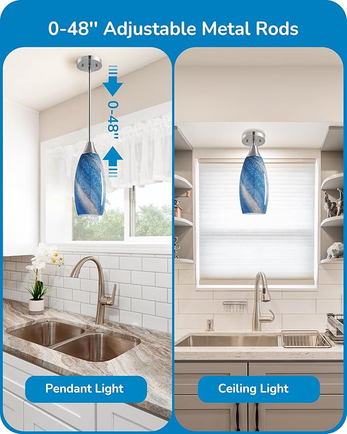 - 【Wide Application】This handcrafted glass pendant light with simple and modern design is perfect to blend in with any decor style, ideal for kitchen island, bar, kitchen sink, bathroom and dining roon; ETL listed
