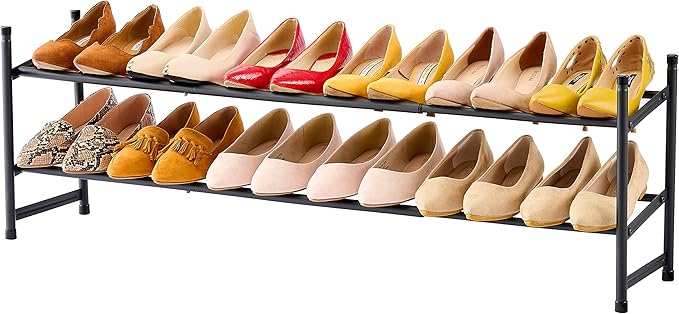 Tajsoon Expandable Shoe Rack for Closet 2 Tier, 28“-41“ Adjustable & Stackable Shoe Shelf Storage, Metal Shoe Rack Organizer for Front Door Entrance, Closet, Garage, Entryway, Black