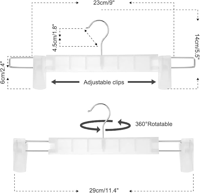 Clothes Pants Hangers, Space-Saving Skirt Holders with 360 ° Swivel Hooks, Adjustable Clips, Trouser Hangers, Clothes Coat Garment Jeans Hangers (20 Pack, Transparent)