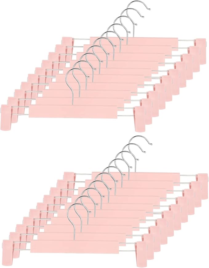 Clothes Pants Hangers, Space-Saving Skirt Holders with 360 ° Swivel Hooks, Adjustable Clips, Trouser Hangers, Clothes Coat Garment Jeans Hangers (20 Pack, Pink)