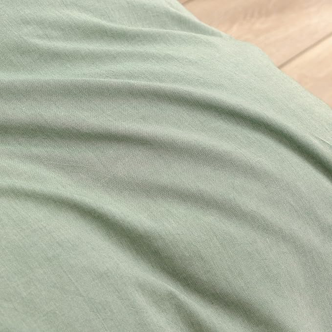BESTOUCH Duvet Cover Set 100% Washed Cotton Linen Feel Super Soft Comfortable Chic Lightweight 3 PCs Home Bedding Set Solid Green Cal King