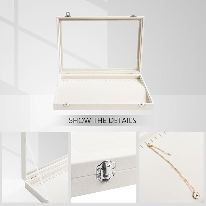 - Good Material:This jewelry tray organizer, wrapped in high quality velvet, feel soft and protects the jewelry from wear and tear.The transparent glass lid not only allows us to find what we need at a glance, but also prevents dust.