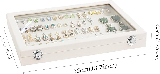 - Jewelry display Size:13.7x9.4x1.7Inches.You can save space by stacking earring organizer box or storing them in drawers.Simple and elegant design can suit any style