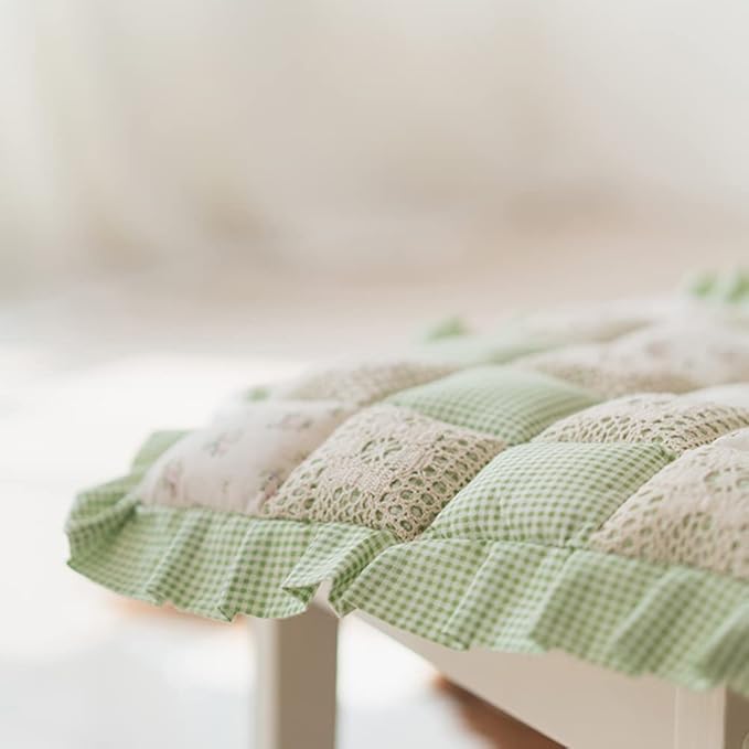 vctops Lace Patchwork Chair Pad Cushion with Ties, Elegant Ruffle Edge Decorative Cushions Farmhouse Floral Pattern Square Seat Cushion for Kitchen Dining Room Office (Type B,16"x16")