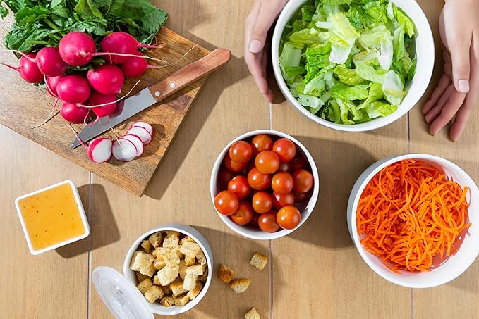 - Salads, Soups & Beyond: Includes 50, 28, 16, and 9 oz bowls. Each is designed with a beautiful matte finish, satisfying weight and goes right into the dishwasher for easy cleanup
