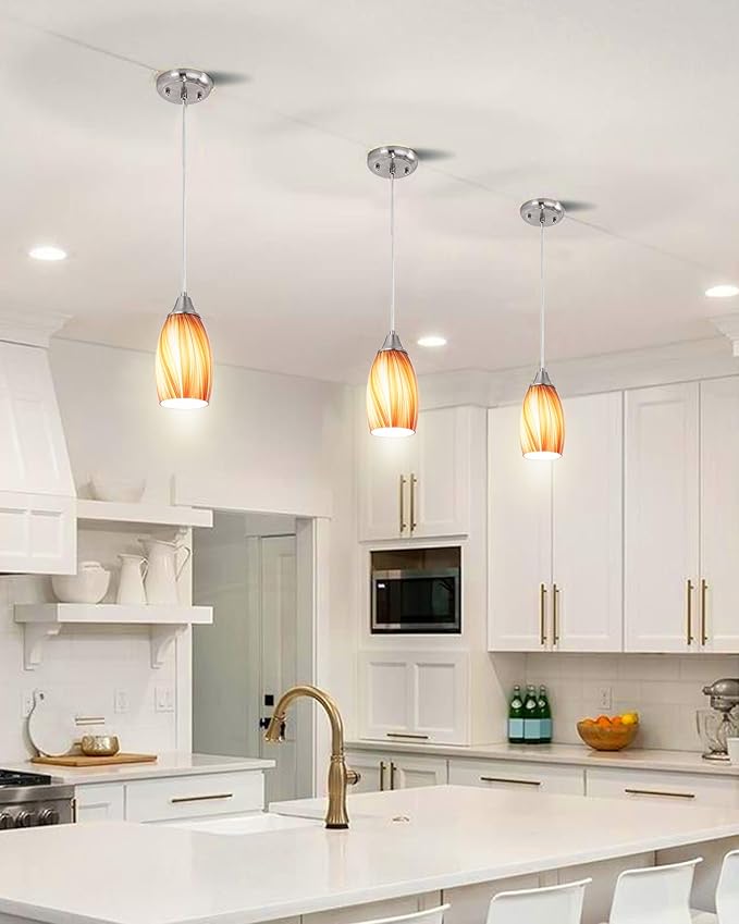 - Unique Art Glass Patterns:This mini glass pendant light fixture is Hand-blown unique pattern Art glass shade,due to its hand-made nature,each piece of blown glass will vary in color and pattern.
