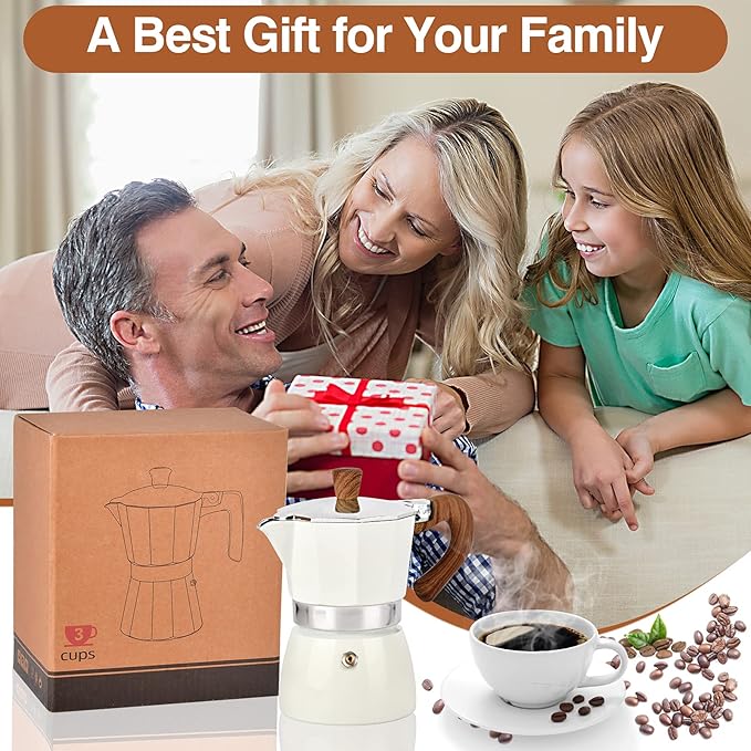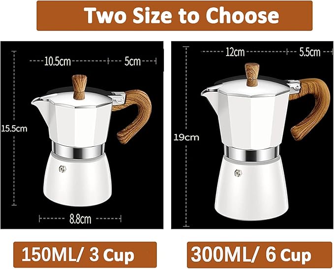 - 【Safe & Hassle Free】 Our Aluminum Stovetop Espresso Maker Moka Pot made with durable aluminum that keeps coffee warm. We gave the Stovetop Espresso maker moka pot a soft cool touch handle and safety valve to release excess steam for easy handling.