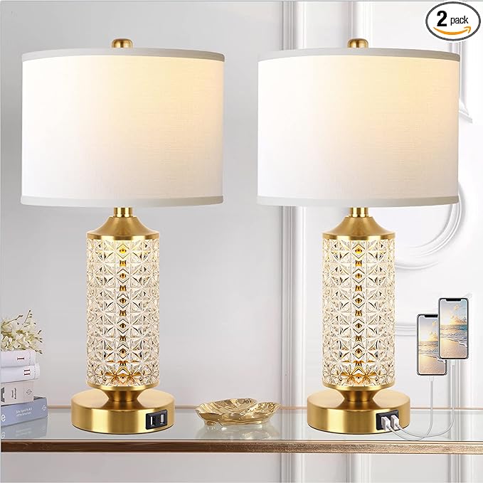 - 【Top Table Lamp and Bottom Night Lamp】This gold table lamp set of 2 offers a variety of lighting options. You will get regular table lamps and night lights, controlled on/off by a 4-way rotary switch: table lamp on, night light on, both on, both off, glass table lamp with USB providing you with enough lighting options to meet your different needs walking in the dark, accompany you before bed, gold table lamp modern also allows you to find your way easily and safely when you wake up at night.