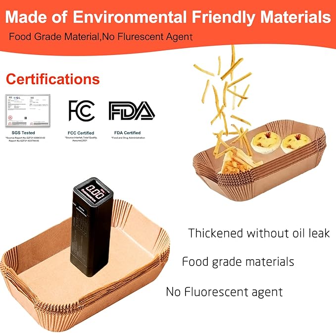 - 【Easy to Use】These non-stick air fryer disposable paper liner are designed with a rectangle bowl shape, which do not need to tear, fold, cut, nor bend, and you can directly put it in when you are ready to cook.