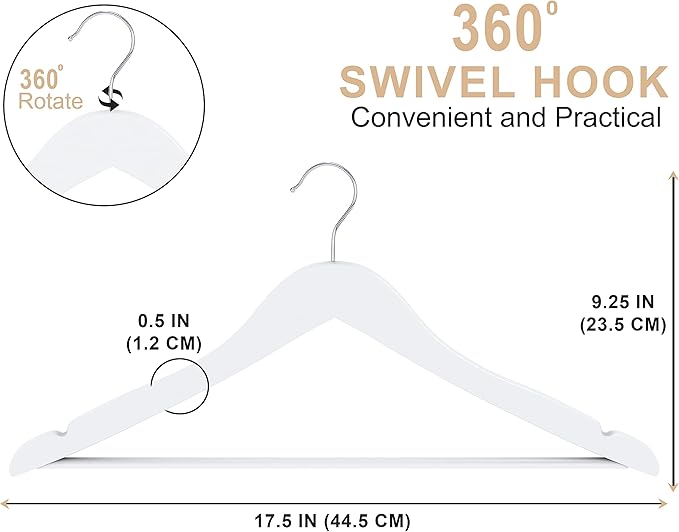 Utopia Home Premium Wooden Hangers 20 Pack - Durable & Slim Coat Hanger - Suit Hanger with 360-Degree Rotatable Hook - Wood Hangers with Shoulder Grooves (White Color)