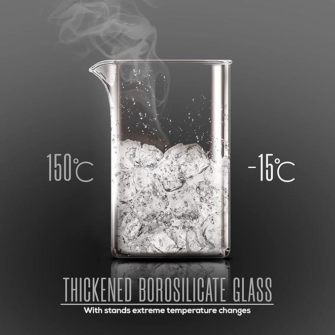 - Durable heat resistant borosilicate glass carafe beaker sits in stylish insulated plastic frame which makes pouring coffee easier and prevent wobbling
