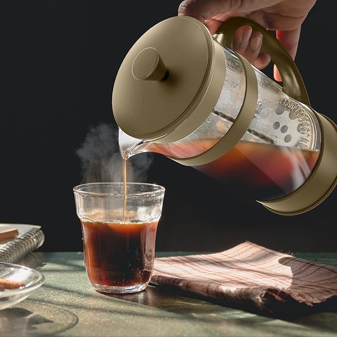 - Durable heat resistant borosilicate glass carafe beaker sits in stylish insulated plastic frame which makes pouring coffee easier and prevent wobbling