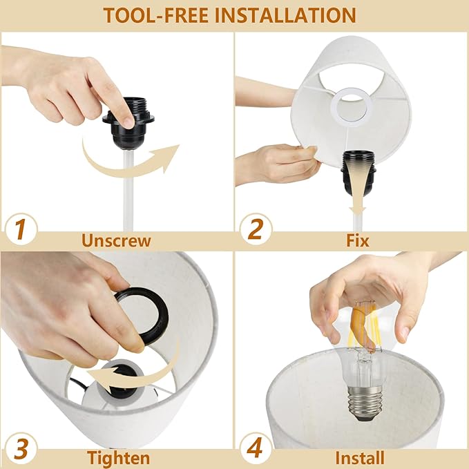 - Fully Adjustable Brightness: Customize your lighting with our dimmable bedside lamp. Rotate the knob for brightness from 0% to 100%, featuring an 800-lumen LED E26 bulb for soft white light.