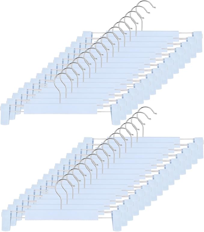 Clothes Pants Hangers, Space-Saving Skirt Holders with 360 ° Swivel Hooks, Adjustable Clips, Trouser Hangers, Clothes Coat Garment Jeans Hangers (30 Pack, Blue)