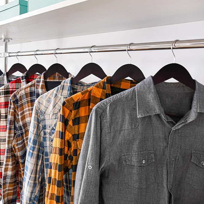 - Wood Hangers with Perfectly shaped notches along the shoulders allow you to hang shirts, blouses and dresses effortlessly.