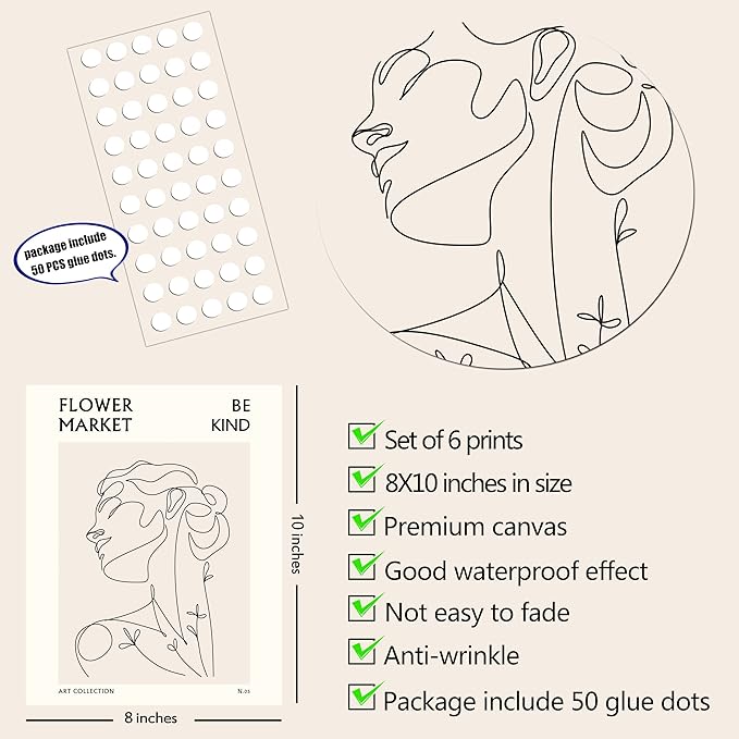 - Easy to decorate - Our package contains 50 glue points,so you can paste print posters art directly with them.Or you can match your favorite frame for installation